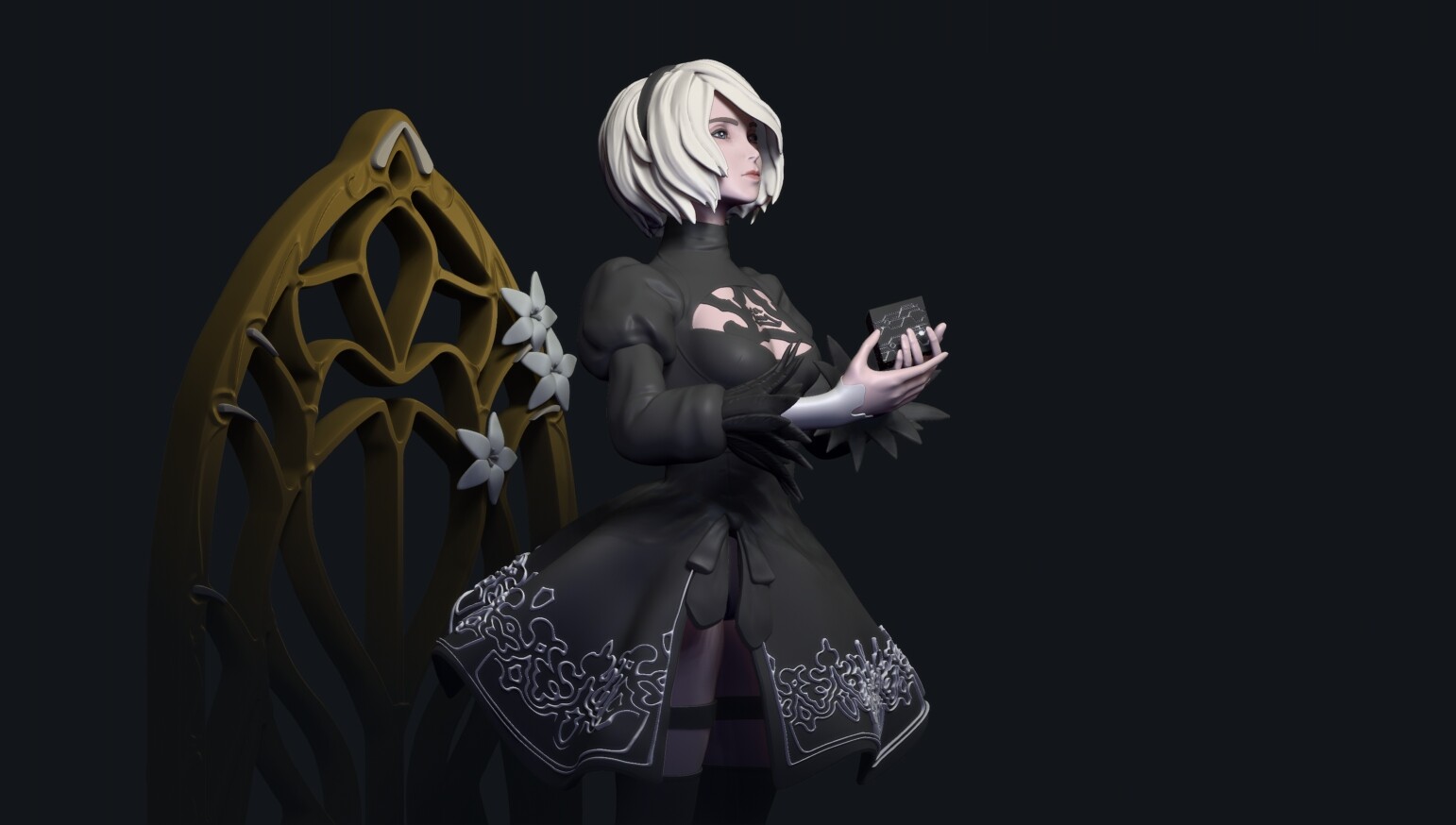 I love everything about Yoko Taro's universe. From first time I saw Drag on Dragoon to Nier Replicant Remaster, it was always something special to me. Sometimes the story would stand out and sometimes the characters. I still remember reeling from twists that Nier Automata threw at you as a player. I really wanted to capture hope andd lyrical vulnerability of 2B from Nier Automata. This fanart sculpt's amount of details is intended to show up when 3D printed, so some things might be a bit more emphasized than on the actual character.